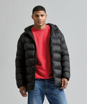 Made with 100% recycled materials. Hood with adjustable toggles. Rib knit cuffs. Adjustable toggles in hem. Full front zip. Internal pocket. Mid-length. Removable recycled zip pull.