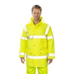 Premium waterproof and breathable fabric with mechanical stretch properties. Waterproof with taped seams, preventing water penetration. Extremely water-resistant, PFAS-free Texpel™ Splash Eco fabric finish – water beads away from fabric surface. Acti-Reach™ innovative one-panel construction increases arm and torso mobility when reaching, turning or twisting. Zipped chest pocket. One side zip pocket provides secure storage. Internal chest pocket. Pre-bent sleeves allow for increased freedom of movement. Hook-and-loop cuffs for a secure fit. Raglan sleeves for a comfort fit. Waterproof zips to prevent water penetration. Helmet-compatible adjustable hood. Innovative stretch panelling in key movement areas provides excellent comfort and flexibility. Heat-applied segmented reflective tape for added visibility. Two-way zip for quick and easy access. Five pockets for ample storage. Radio loops for easy clipping of a radio. ID card holder for ID card display. Internal phone pocket. Detachable hood. 40+ UPF rated fabric to block 98% of UV rays. Print access for corporate branding. Certified to EN ISO 20471 Class 2 after 50 washes. CE certified. Complies with RIS 3279-TOM for rail industry (Orange only). EN342 Protection against cold, certified up to -36°C.